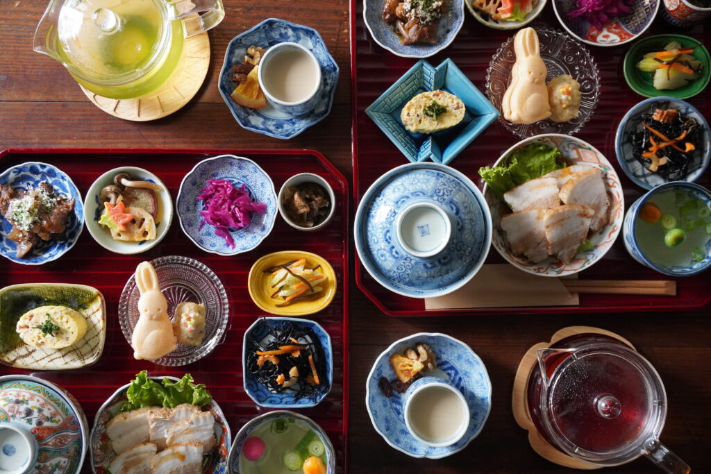 主に江戸から明治頃に作られた豆皿小皿を使用したランチが人気です。